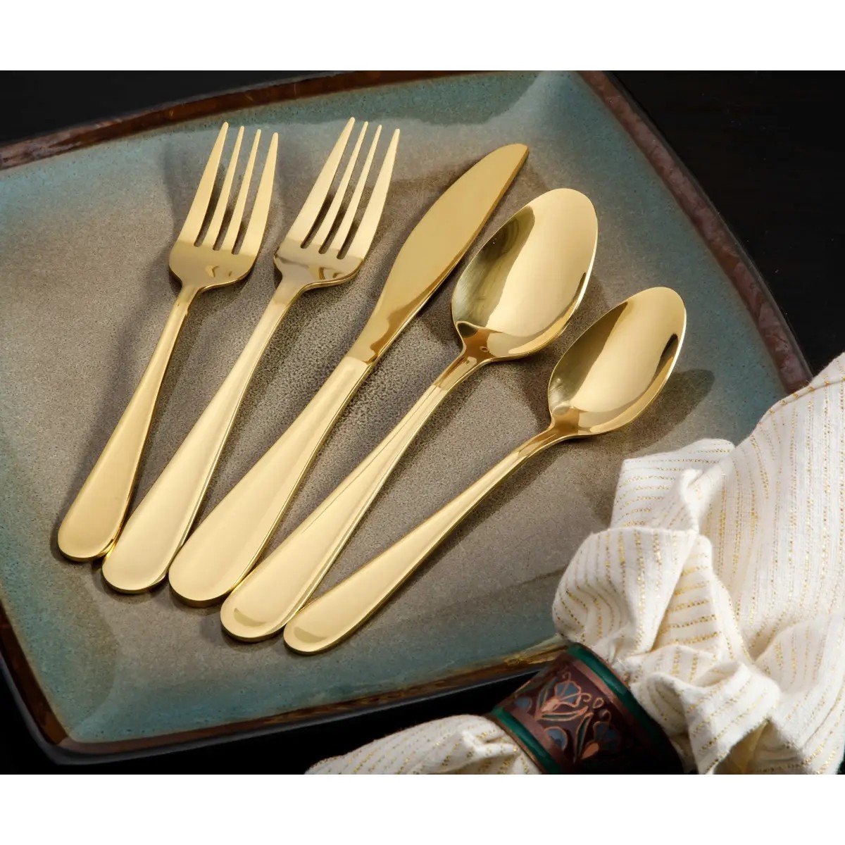 • Statement metallic finishes that elevate any tablescape